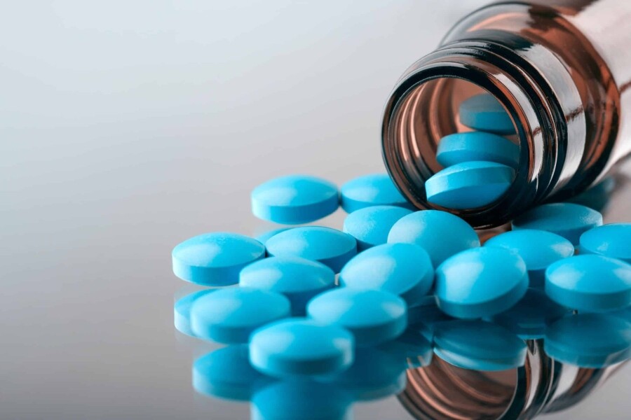 Viagra (sildenafil citrate) is one of the most widely used erectile dysfunction prescription drugs. Viagra works by blocking phosphodiesterase type 5 (PDE5). PDE5 is an enzyme that can block or diminish blood flow to the penis during an erection. Therefore, Viagra helps increase the blood flow to the penial region to allow a male to get and keep an erection. This medication is known for its blue pill, and it starts working within 30-60 minutes after taking it.